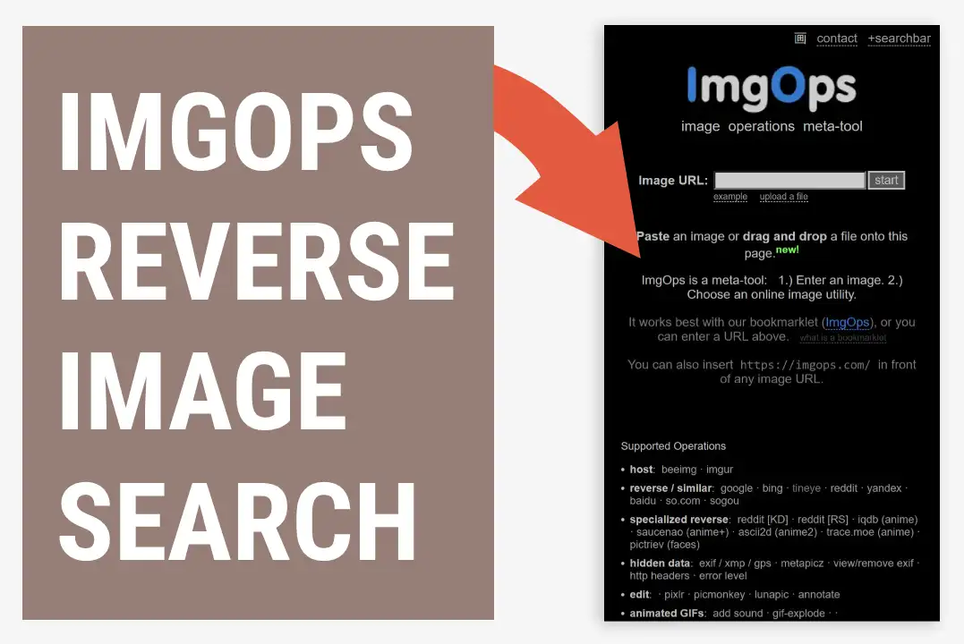 Another popular option is ImgOps, which combines several reverse image search tools under one roof. It lets you upload images and perform a search across a variety of services, including Google, Bing, Tineye, and Reddit. It also allows you to convert images, edit them, and search for hidden information.